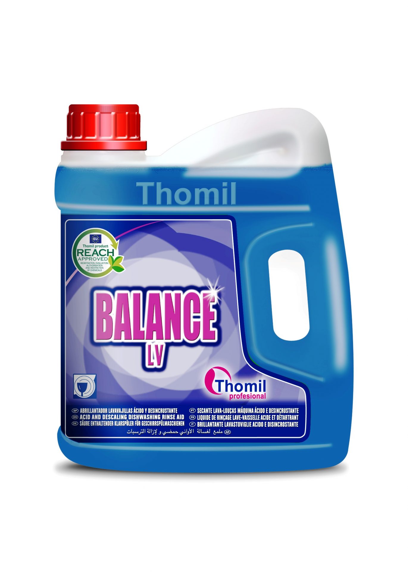 O seu pH ácido (2,5) evita a formação de manchas de calcário e a incrustação da máquina e sua caldeira de enxaguamento.