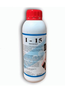 I-15 é um detergente à base ácido sulfúrico que reage agressivamente com a matéria orgânica degradando estruturas orgânicas e minerais.