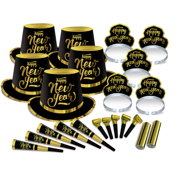 Sortido de artigos de festa dourado e preto p/50 pessoas 36x29x33cm
